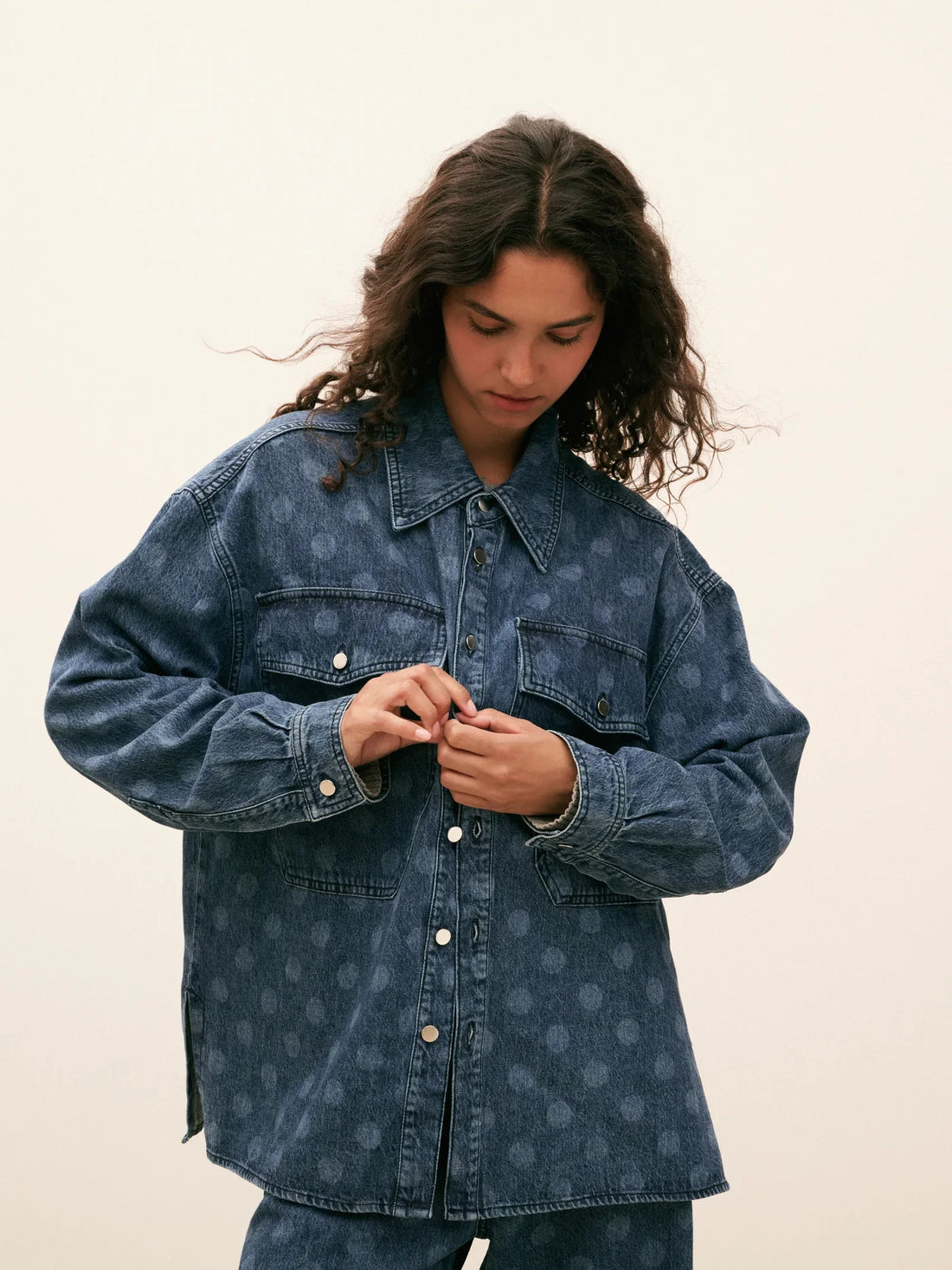 Denim jacket with a spit print and oversized cut. 68% Cotton | 32% Hemp Cool...