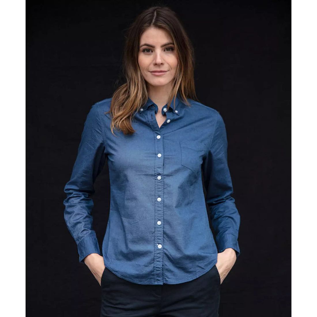 Cutter & Buck Ellensburg Ladies Denim Shirt | Long Sleeve | Cotton | Indigo or Blue | XS-2XL
