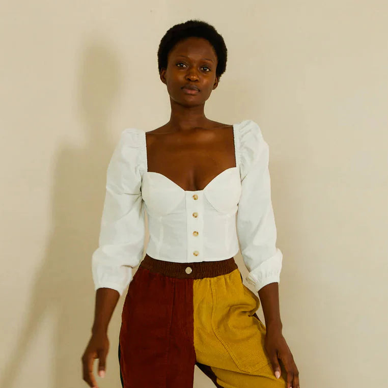 The Eade Top is a cropped fitted top made in a cotton crepe that brings...