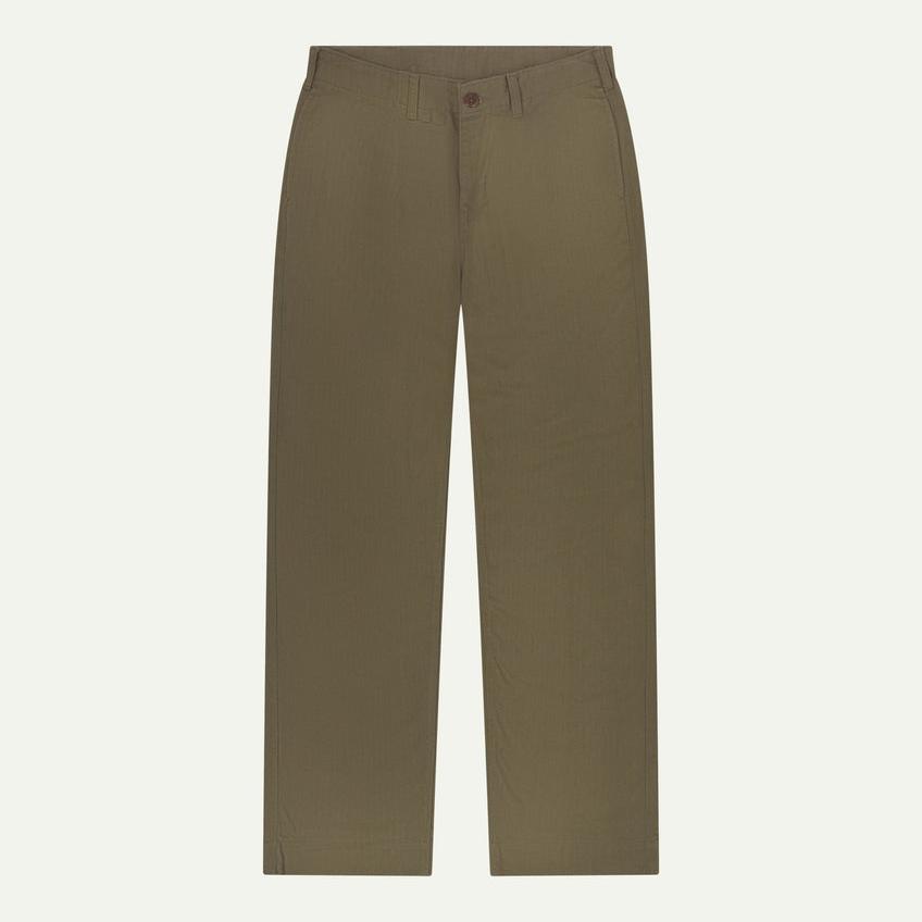 Wide worker inspired trousers made from a cotton fabric that has been garment-dyed for a...