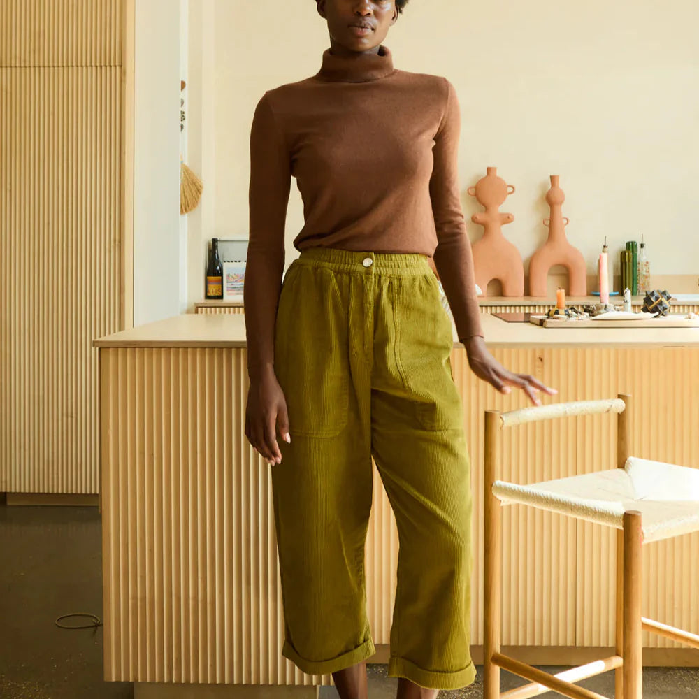 Relaxed fit, straight leg, cropped trouser crafted in a wide wale cotton corduroy. With large...
