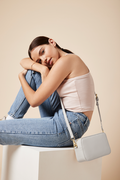 Zipped internal pocket | Lined | Gold colour zips | Adjustable shoulder strap | 21x13x7cm