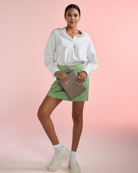 iPad® Mini/tablet compartment | Fine grain faux leather | Multiple pockets | Soft touch lining | 20x23cm