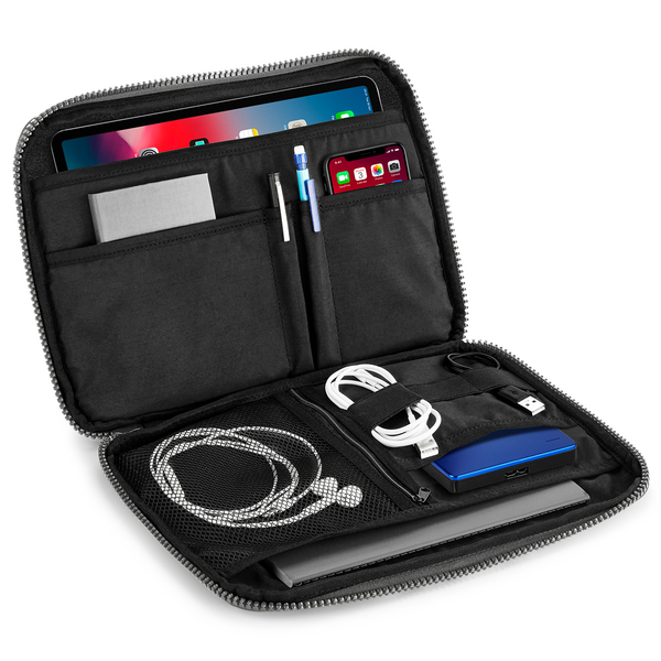BagBase Essential Tech Organiser | 11" Tablet Case | Accessory Pockets | Grey or Black | One Size
