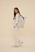 100% recycled | Roll-up extension | Padded back panel | Zip front pocket | Zip rear pocket | 28x45x14cm
