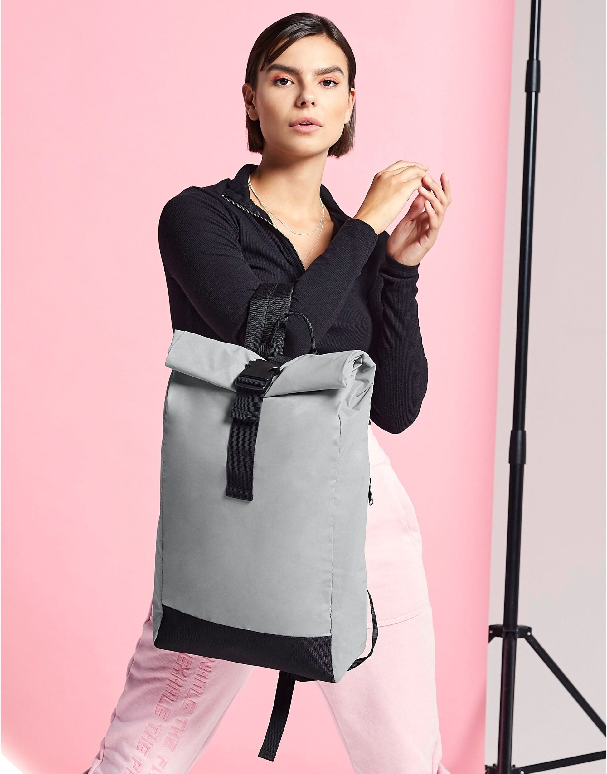 BagBase Reflective Roll Top Backpack | 15 Litre Rucksack | Black or Silver | One Size