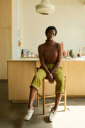 Relaxed fit, straight leg, cropped trouser crafted in a wide wale cotton corduroy. With large utility-style pockets in the front and back. Wide cuffs at the hem and a high elasticated waist. Model is 5'9" / 176 cm and is wearing a size UK 8
