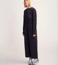 Round neck jersey jumpsuit, with long sleeves. Closed on back with 2 corozo nut buttons and an optional belt on same fabric.
