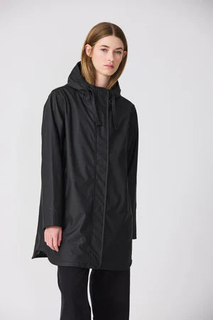 The Snow Jacket offers a modern, functional style that combines practicality with a clean design. Featuring fully taped seams, it's made with our iconic 100% waterproof matte PU and features a lightweight, breathable, down-free insulation layer. With a curved hem and fleece lining from shoulders to waist, this contemporary and versatile style is perfect for everyday wear. The model is 1.77m tall and wears a size 38.