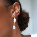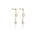 Introducing Blair Pearl Studs. Featuring two fresh water pearls suspended from stainless steel studs. Perfect pearl hoops perfect for day to night style.