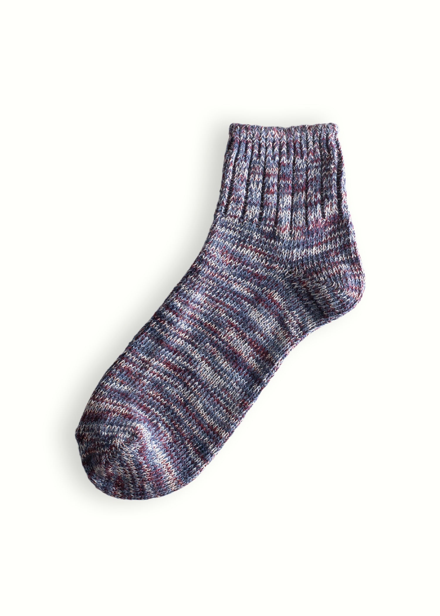 Blend Purple/Blue Short Socks are made with a multicolor blend of recycled cotton to produce padded and resistant yarns. In addition, the softness and original chromatic composition make them the perfect ankle sock for fashionable summer look. In this way, quality sock is guaranteed without neglecting original design.