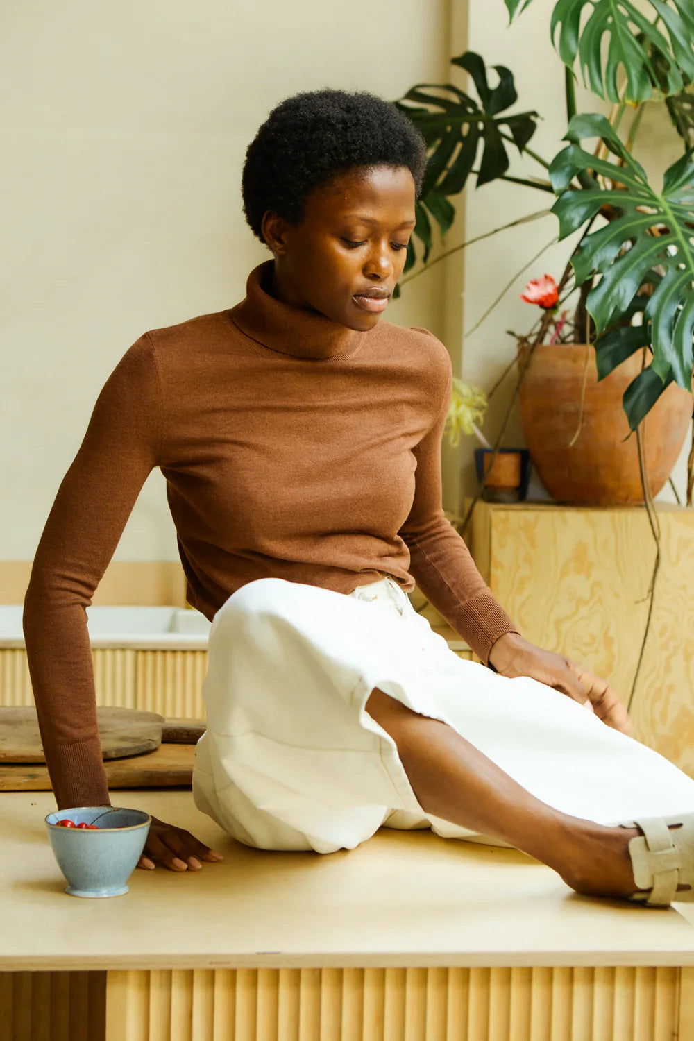 This fine-knit top features a high turtleneck with long sleeves, finished with ribbed edges. A slim-fit silhouette makes this the perfect layering piece. Model is 5'9" / 176 cm and is wearing a size UK 8.