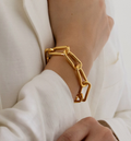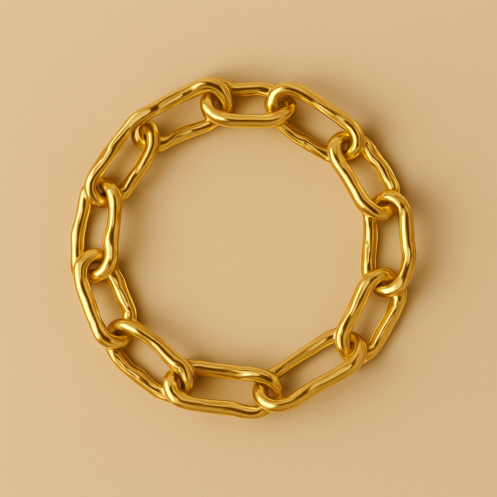 This bracelet is a classic chain. Cast in 18k gold plating, it’s designed to move with you and elevate even the simplest look. Whether worn solo or stacked with slim bangles, it brings a grounded elegance to your everyday rotation.