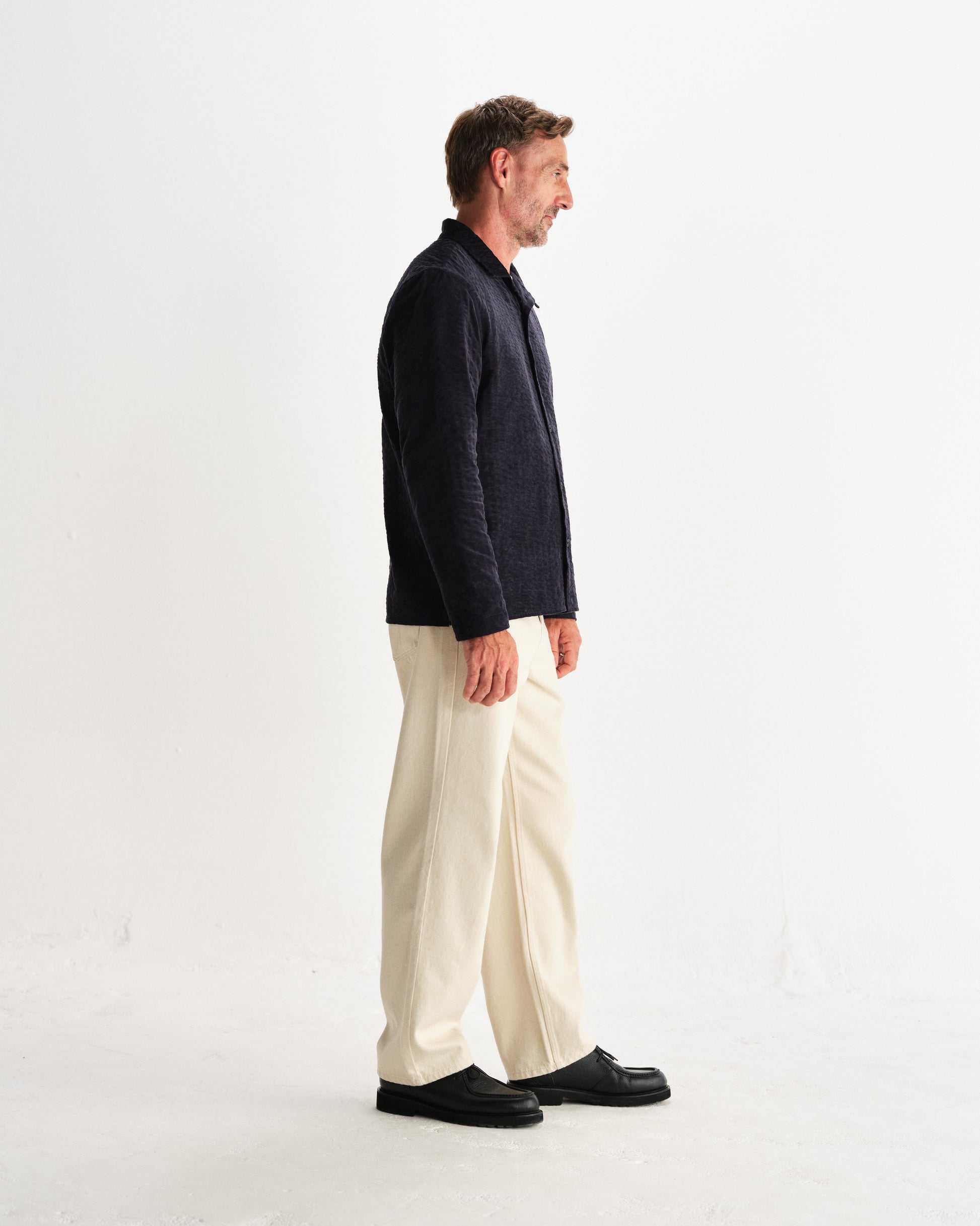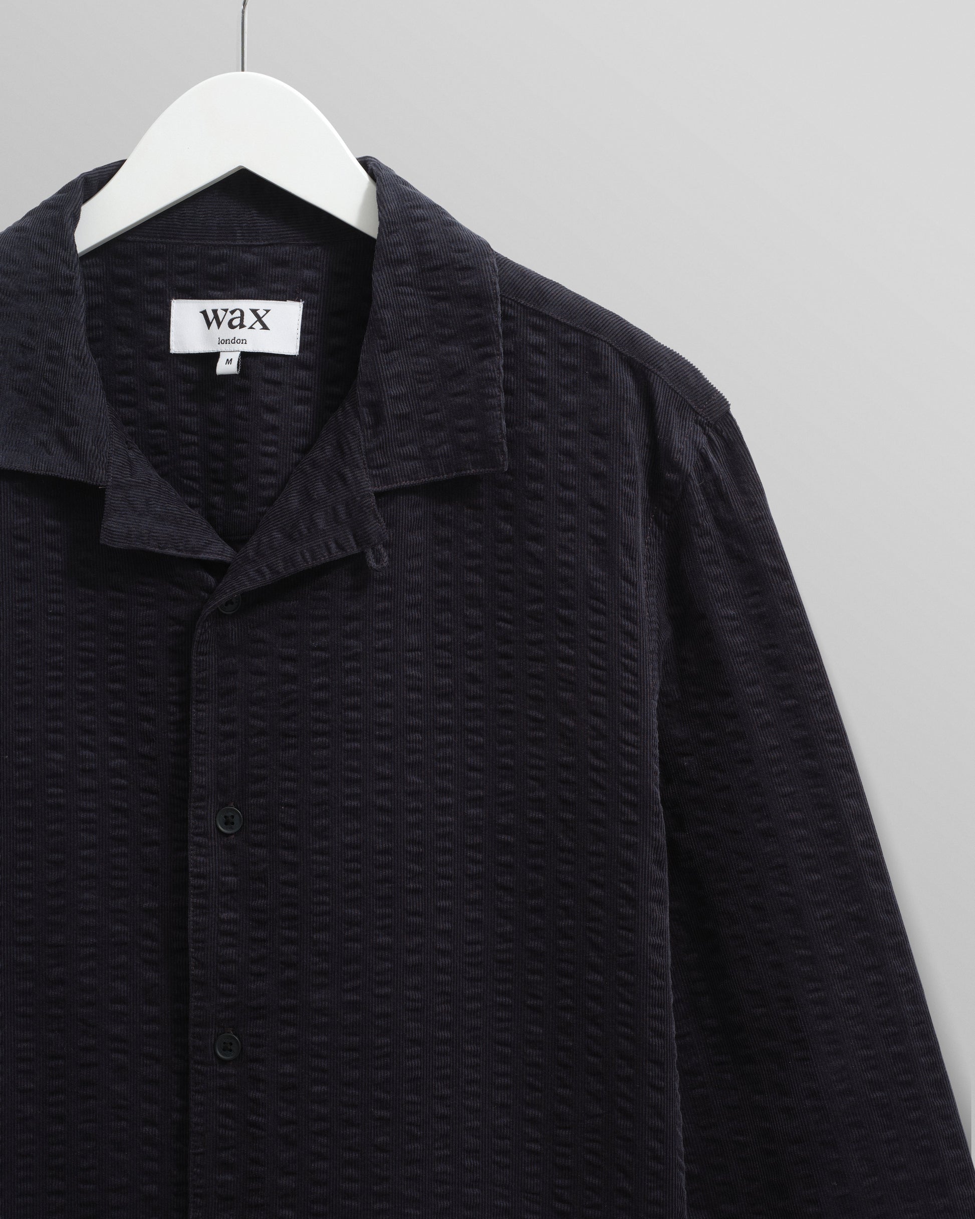 The Corey shirt is poised to become a hero piece of your seasonal collection. Cut for a relaxed fit, it’s made from soft 100% cotton seersucker corduroy in a rich navy colourway. It features a camp collar, clean, minimal cuff detailing and a straight hem.