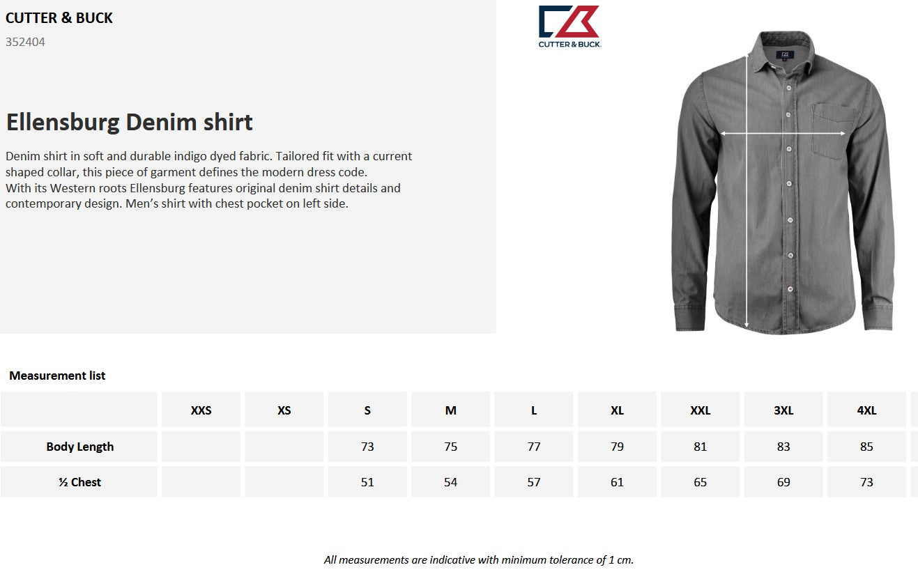 Cutter & Buck Ellensburg Men's Denim Shirt | Long Sleeve | Cotton | Indigo or Blue | S-4XL