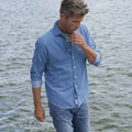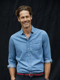 Shirt in soft and durable indigo-dyed denim fabric. Tailored fit with a fashionable shaped collar, this iconic garment defines the modern dress code. With its Western roots Ellensburg features original denim shirt details and contemporary design. The Men’s shirt has a chest pocket at the left side.- Soft and durable indigo-dyed denim fabric