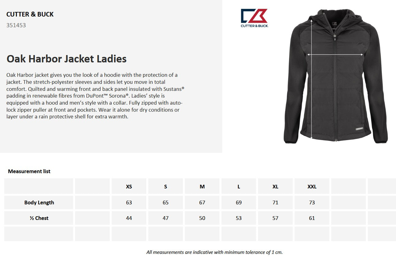 Oak Harbor is Cutter & Buck's hybrid jacket that embraces the perfect balance of warmth, style and functionality. The stretch-polyester sides let you move in total comfort. Quilted and warming front and back panel insulated with Sustans® padding in renewable fibres from DuPont™ Sorona®. Sustans® Dupont™ Sorona® is made out of renewable fibers. The Sustans® production process uses 30% less energy and consists of 37% renewable fibers compared to common insulation materials. Fully zipped with YKK auto-lock zipper slider at front and pockets. Wear it alone for dry conditions or layer under a rain protective shell for extra warmth.- Hybrid jacket that balances warmth, style, and functionality