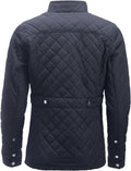 Diamond quilting | Snap-close pockets and placket | Zip chest pocket | Adjustable cuffs | Storm flap
