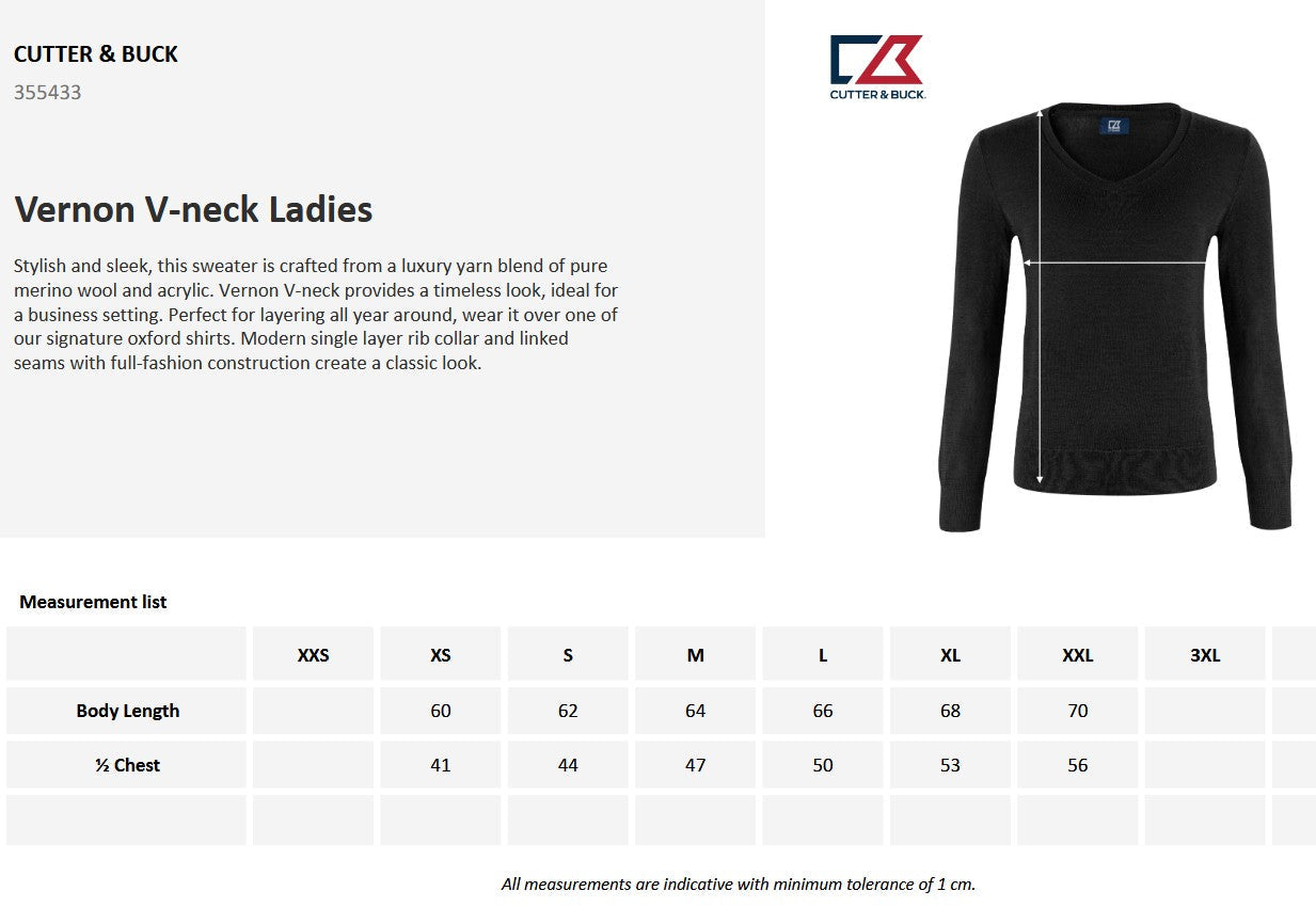 Cutter & Buck Vernon Ladies V-Neck Jumper | Merino Wool Blend Knitwear | 3 Colours | XS-3XL