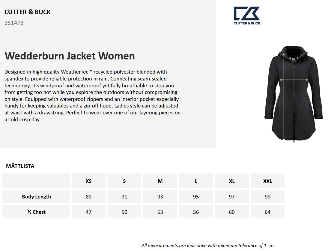 Cutter & Buck Wedderburn Longer Ladies Jacket | Waterproof | Hooded | Navy/Black | XS-2XL