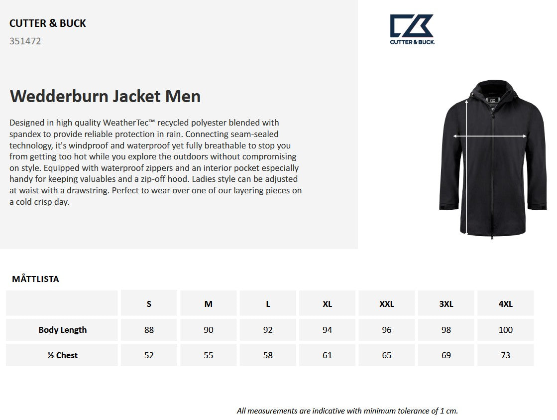 Cutter & Buck Wedderburn Longer Men's Jacket | Waterproof | Hooded | Navy or Black | S-4XL