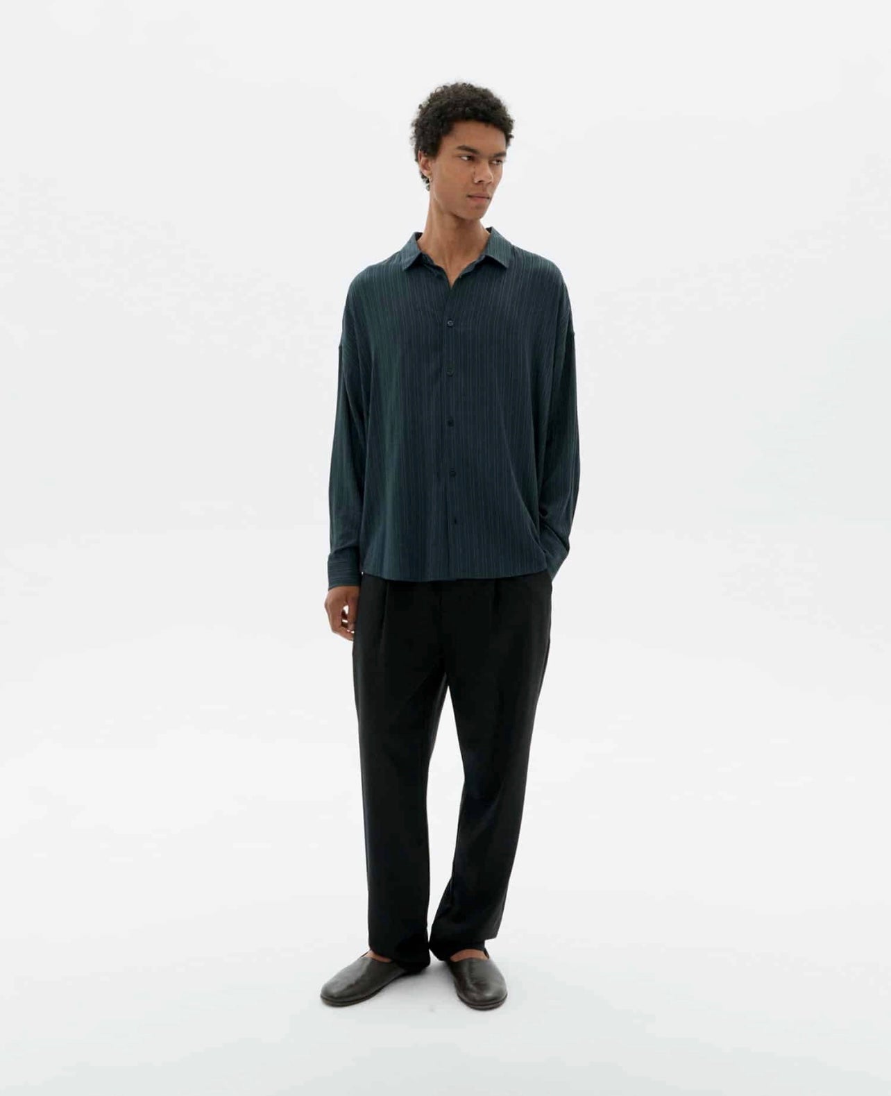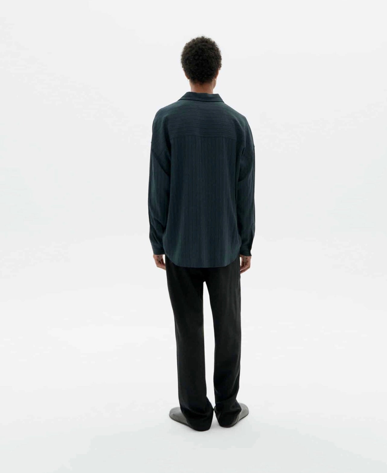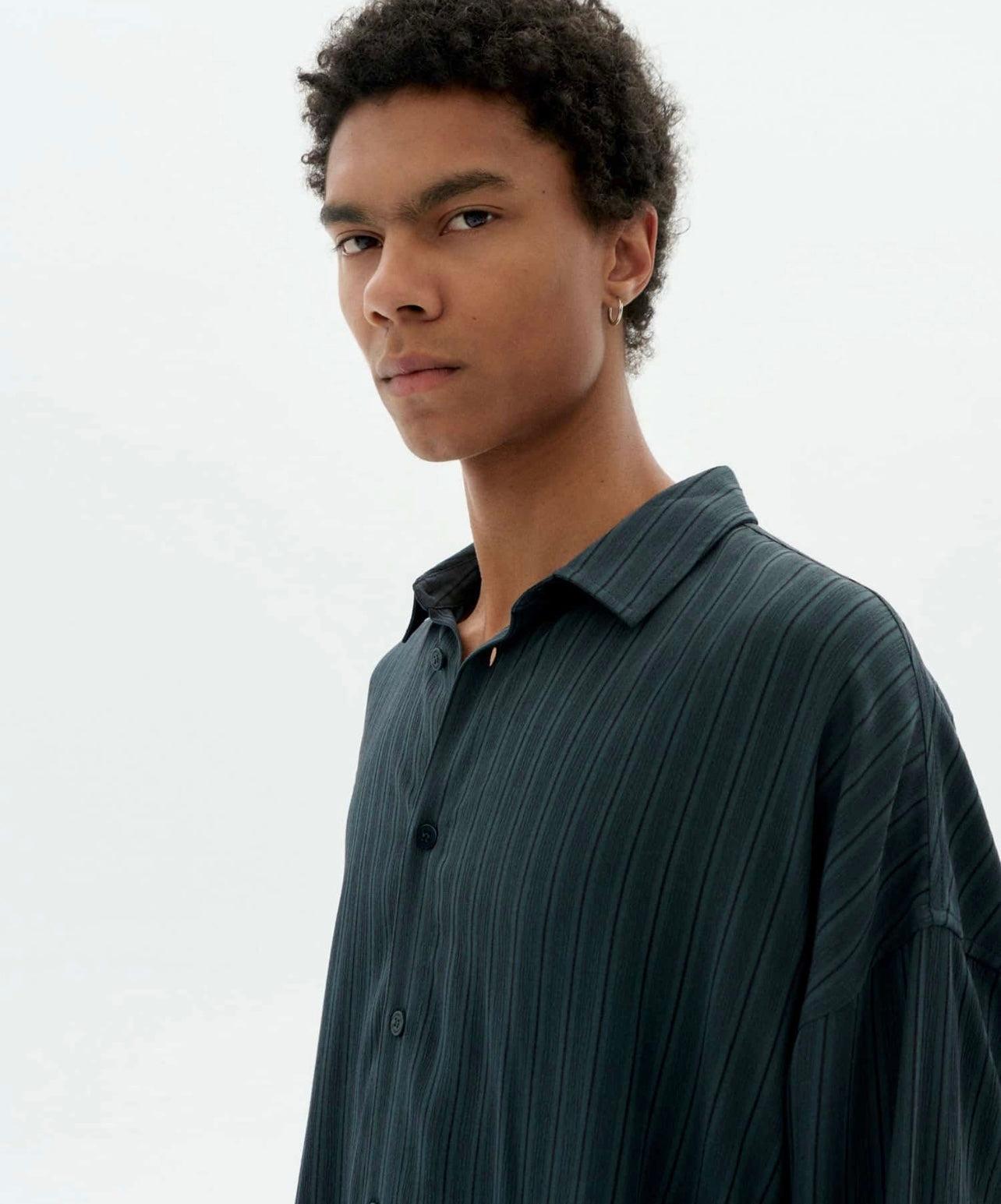 Dark green striped Ecovero Haru shirt made of Ecovero viscose.™