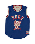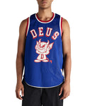 In a time of art, music and diversity, the new DEUS Records collection continues to experiment with apparel ideas and creative approaches. Fascinated by unisex design and bold graphic art, the Deus Records collection expands to include fans around the world. Oversized fitting reversible tank top. DEUS original art print on both sides. Striped trim at the neck and armhole. Polyester mesh material.