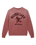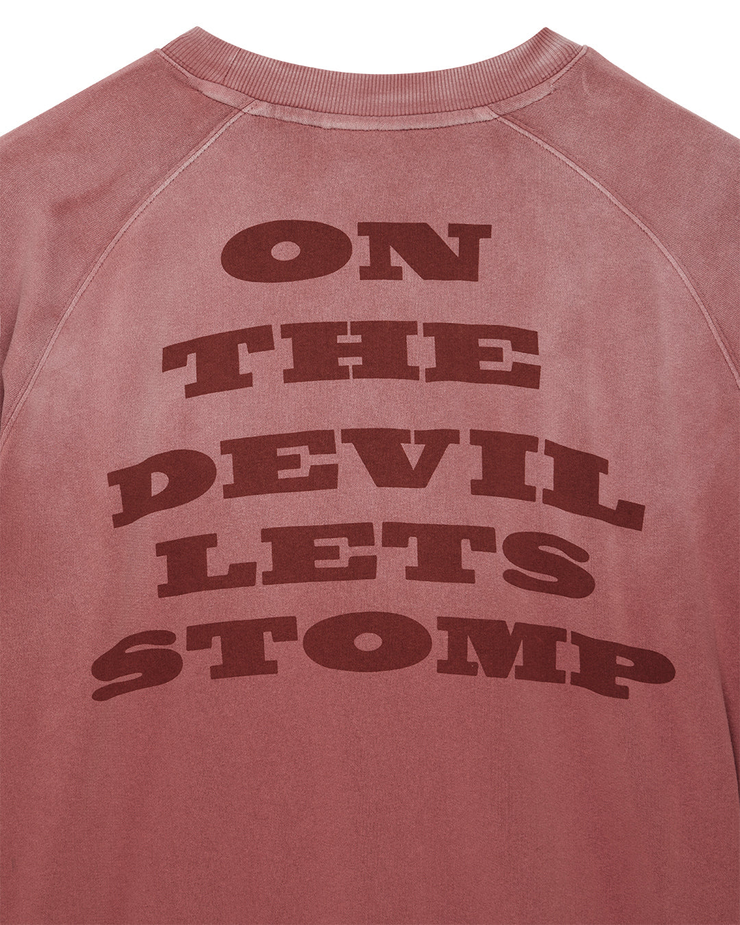 Oversized sweatshirt with placed artwork on the chest and back, made from organic brushed fleece, hand-dyed with a heavy stone wash and a localized vintage fading effect.