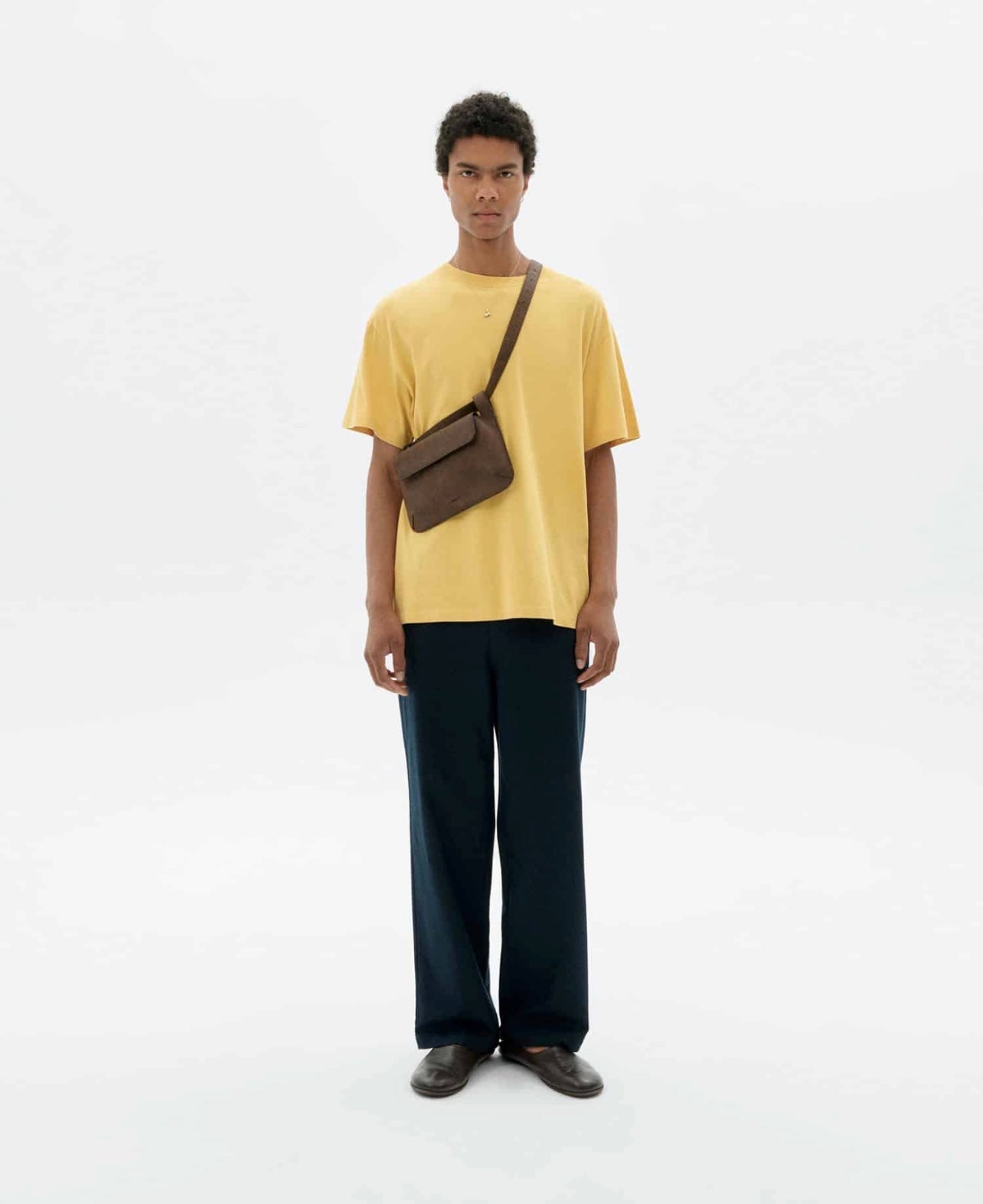 Yellow flower Aaron hand embroidered t-shirt made of organic cotton, with a round neck, short sleeves and relaxed fit.