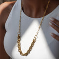 A simple and modern chunky open link chain mixed with a thick knitted contrast chain. This necklace will work with all of your wardrobe to add an effortless style update.