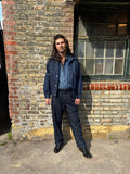 A relaxed fit pleated trouser in a luxurious indigo fabric. Inspired by a vintage denim chino pattern, reimagined in a soft, fluid Tencel blend denim for ultimate comfort and understated style.