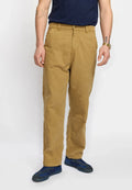 Wide worker inspired trousers made from a cotton fabric that has been garment-dyed for a softer feel and more complex colour configuration.