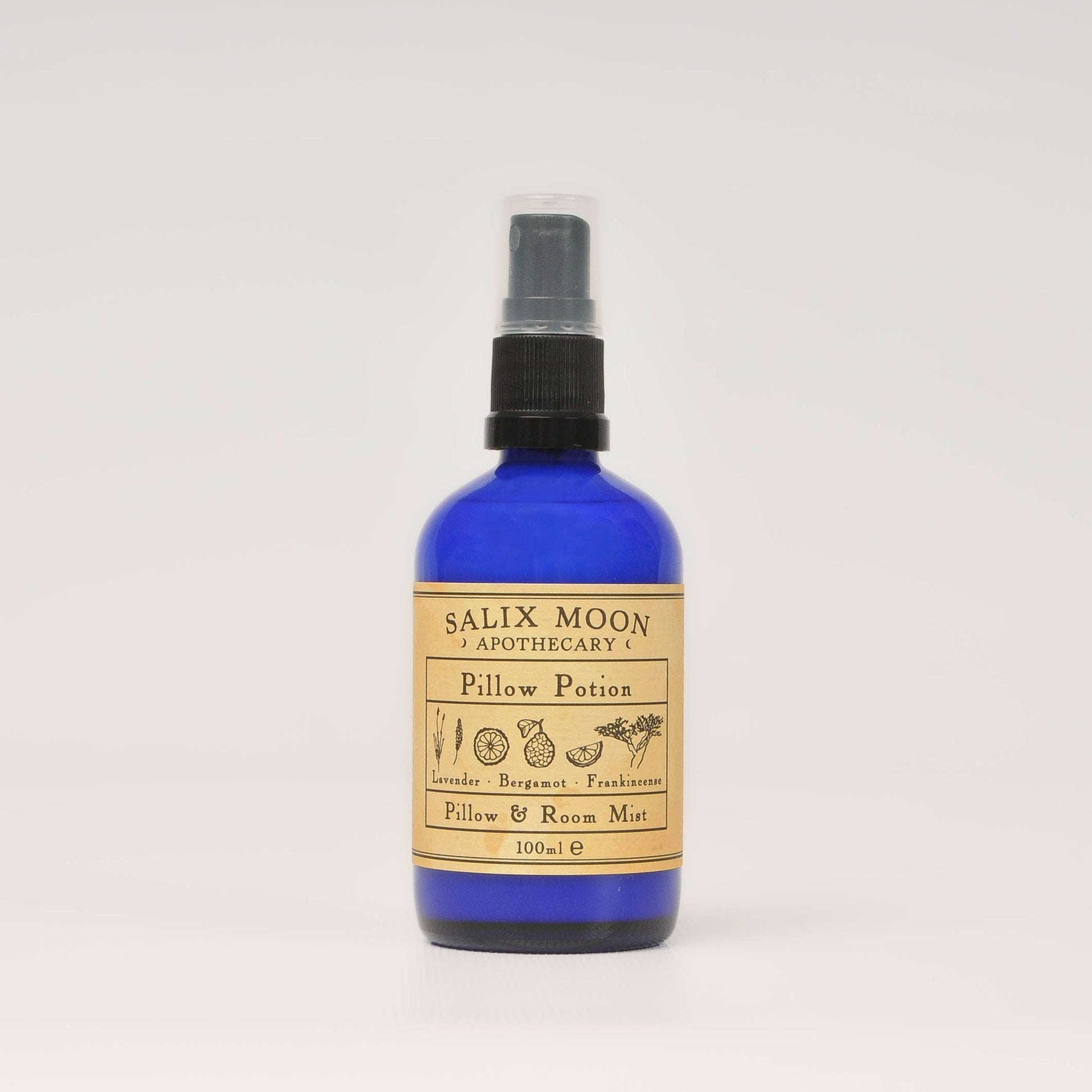 This is a deeply relaxing pillow spray with a blend of calming Lavender, grounding Frankincense and soothing Bergamot essential oil in a 100ml cobalt blue glass bottle with an atomiser spray. Mist generously throughout your dream space and onto your linens as part of your soothing bedtime ritual. Inhale deeply and enjoy the comforting aromas from the essential oils and hydrosols as you drift off into a blissful slumber.