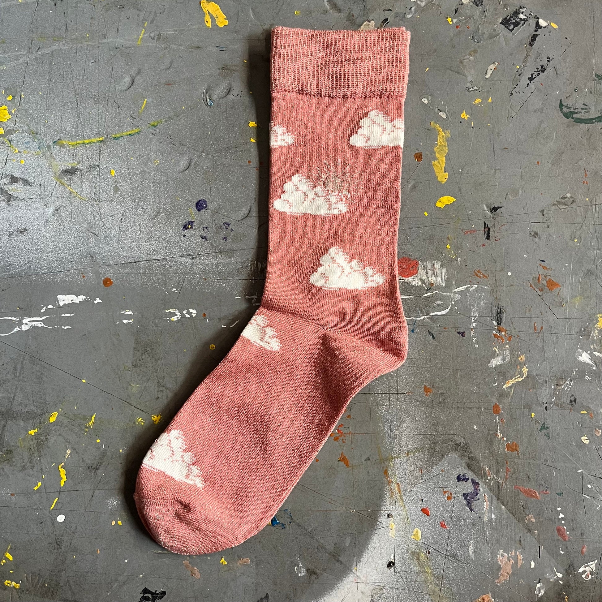 These pretty socks in a glittery color are decorated with clouds with an "engraving" effect. Having them on your feet is like putting on a blazing sky to start your day off right.