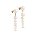 The Carmen earrings are long and elegant, primarily composed of pearls. The pearls are arranged in a beautiful grade, from small to large, creating a sophisticated look. The Carmen earrings are refined in just the right way, and the beautiful freshwater pearls have subtle imperfections that add charm and character.