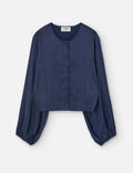 Regular fit · Long balloon sleeves · Round neckline · Front button closure