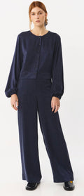 Cut from a soft blend of cupro and viscose, the Rialto Blouse Cupro drapes beautifully while keeping its shape. The round neckline and gently structured balloon sleeves bring volume without bulk, while corozo nut buttons add a refined finish. Polished, fluid, and quietly bold. pro tip: combine it with matching cupro-viscose Tay Pants for a coordinated look that feels effortless and chic.