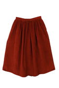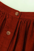 Midi length gathered skirt with front opening and side seam pockets. In rust wide wale cotton corduroy and finished with imitation horn buttons. Elasticated back waistband for a better fit. Model is 5'9" / 176 cm and is wearing a size UK 8.