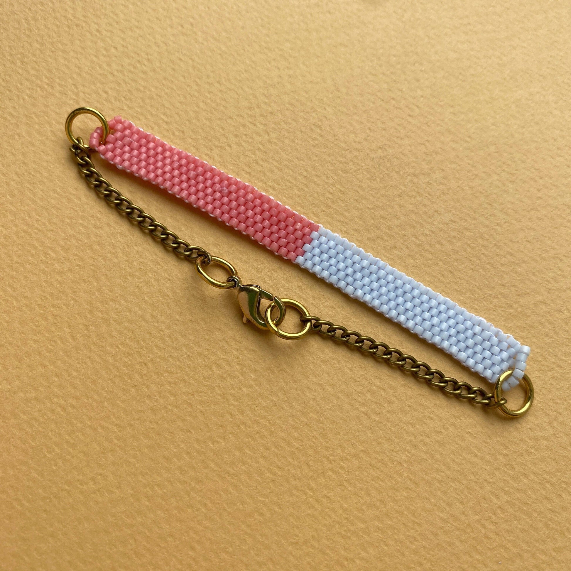 Seed Bead Colour Block Bracelet - Pale Grey and Pink