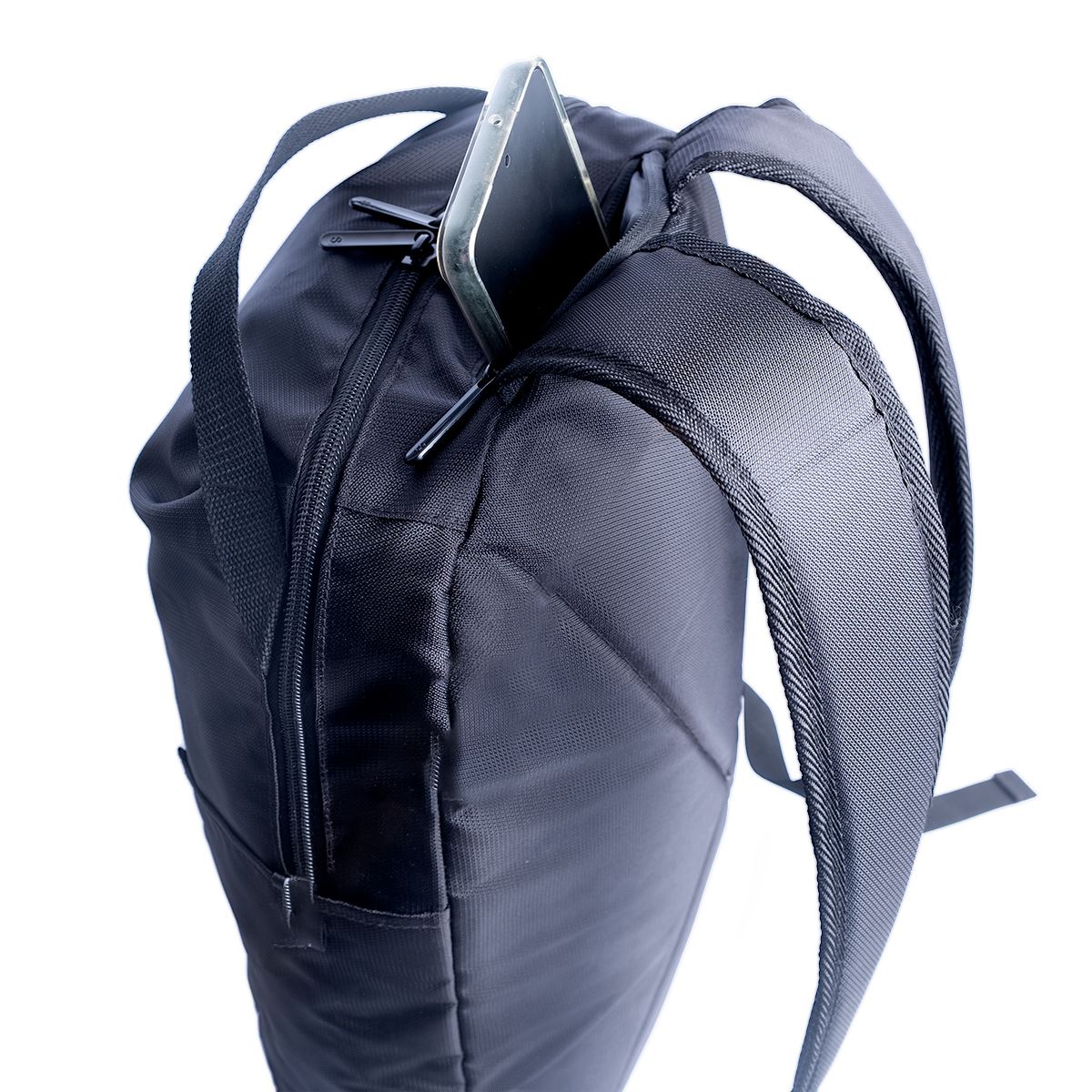100% recycled material | Padded adjustable straps | Padded back | Zip front pocket | 46x30x12cm