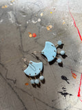 Made from fine porcelain, kiln fired and finished with 14ct filled gold hooks (good for sensitive ears). Lightweight at just 7 grams. Measures 45mm long x 40mm at the widest point. 14ct filled gold earring wires