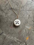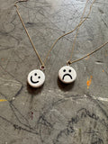 Know someone who changes their mood regularly? Then the mood pendant is for you (or them) These super cute necklaces have a smile on one side and sad face on the other, so you choose how you feel! Crafted from fine white porcelain. Lightweight at 8 grams. Pendent measures approximately 20mm in diameter