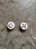 Smiley Sad Pendant on 18" Gold Curb Chain Necklace