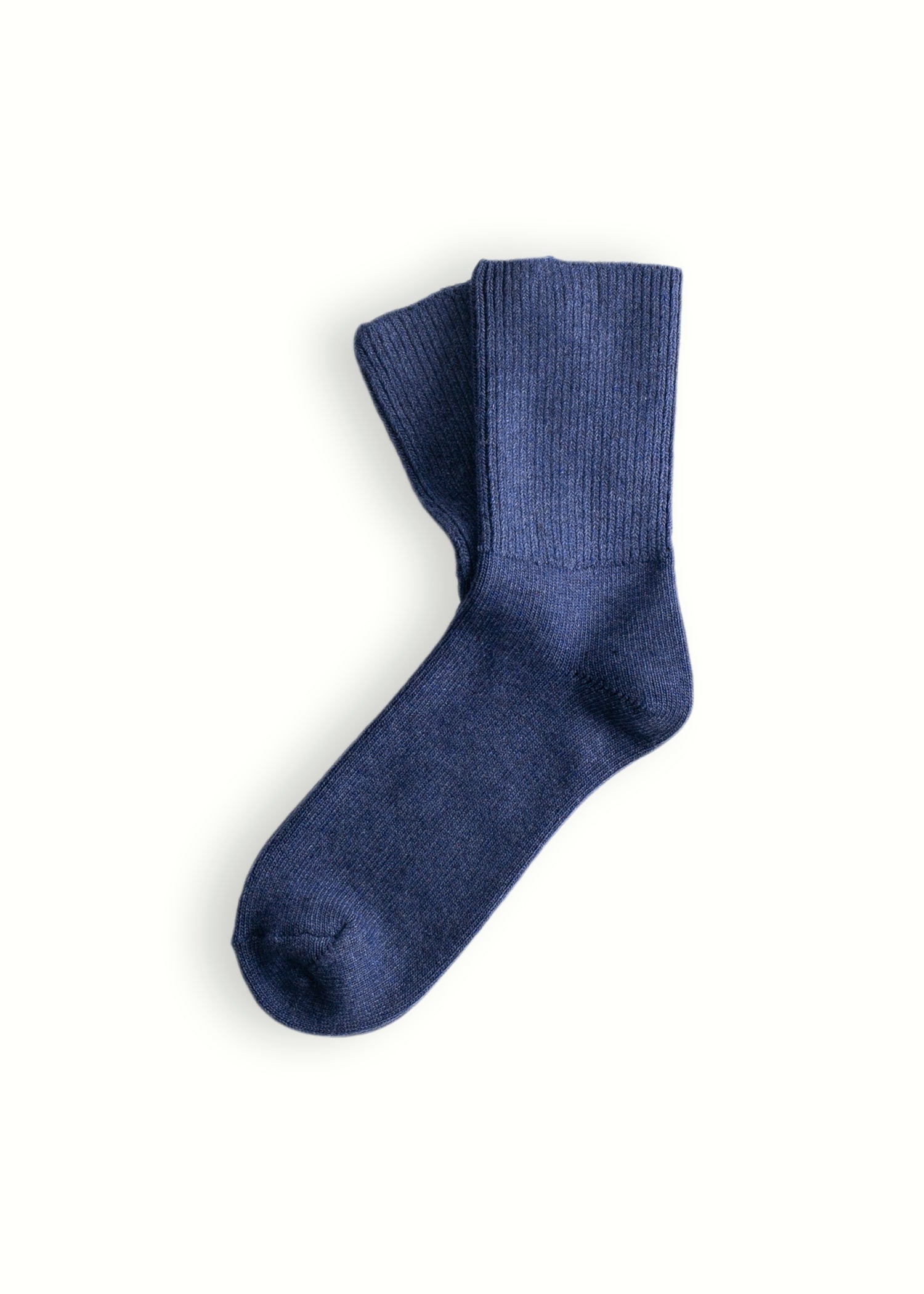 Wool Smooth knit Socks are made in cosy and warm wool and Cashmere, Ribbed throughout with integral ribbed cuffs. To be rolled over at the cuff or as you will. Finely ribbed knit, Perfect fit, Skin-friendly, Lambswool construction, Maximum comfort
