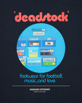 The Deadstock Graphic Tee features an illustration inspired by the iconic poster artwork from the Woodstock film, creatively reimagined to read ‘deadstock’, while referencing rare collectible trainers. This playful twist combines the spirit of the legendary music festival with the vibrant culture of trainer collecting, celebrating the unique style and significance of sought-after footwear.