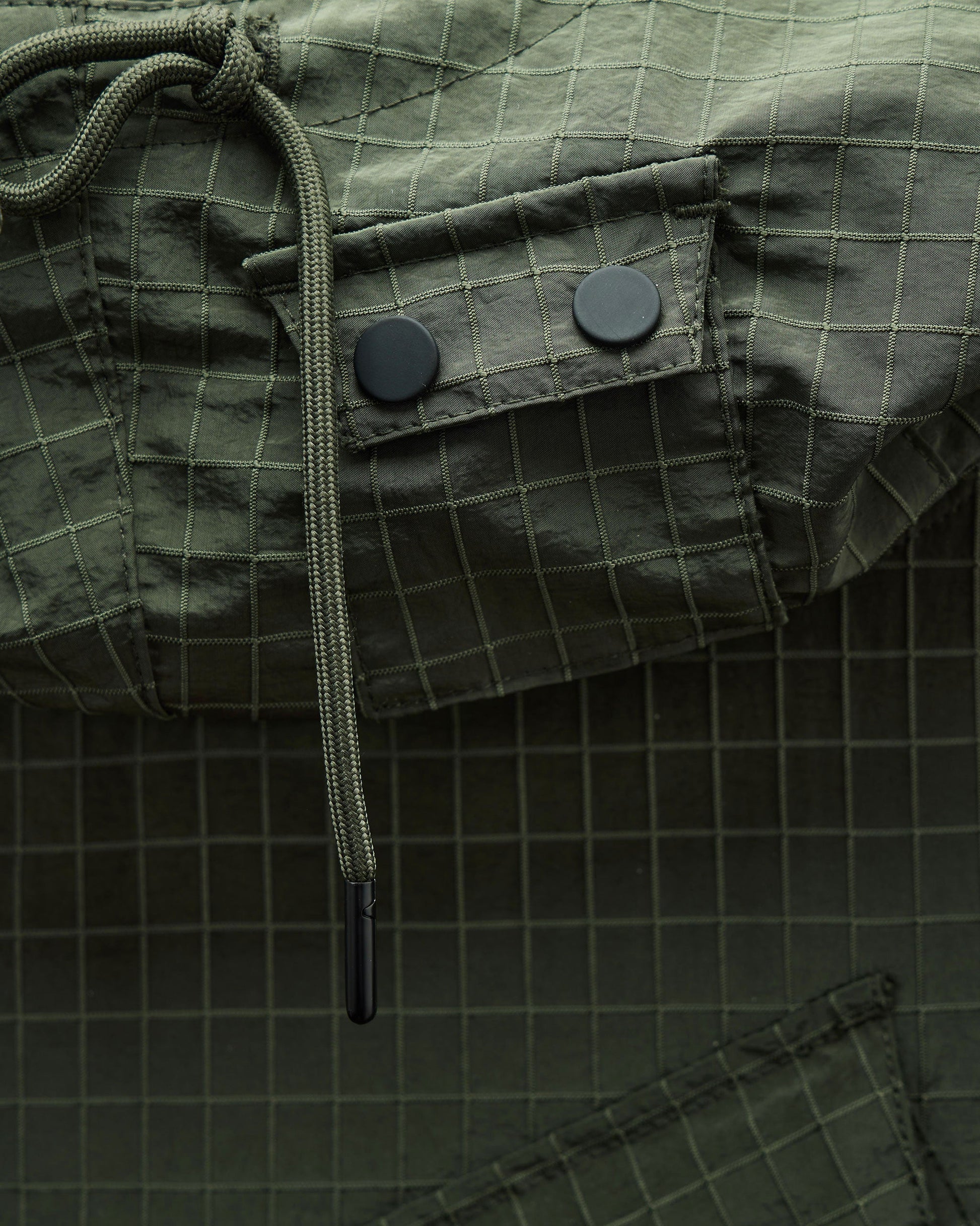 Ripstop over-top made from 100% Nylon large ripstop with 3D braided reinforcement threads for high tensile strength and textured finish. Treated with an additional DWR (Durable Water Repellent) coating.