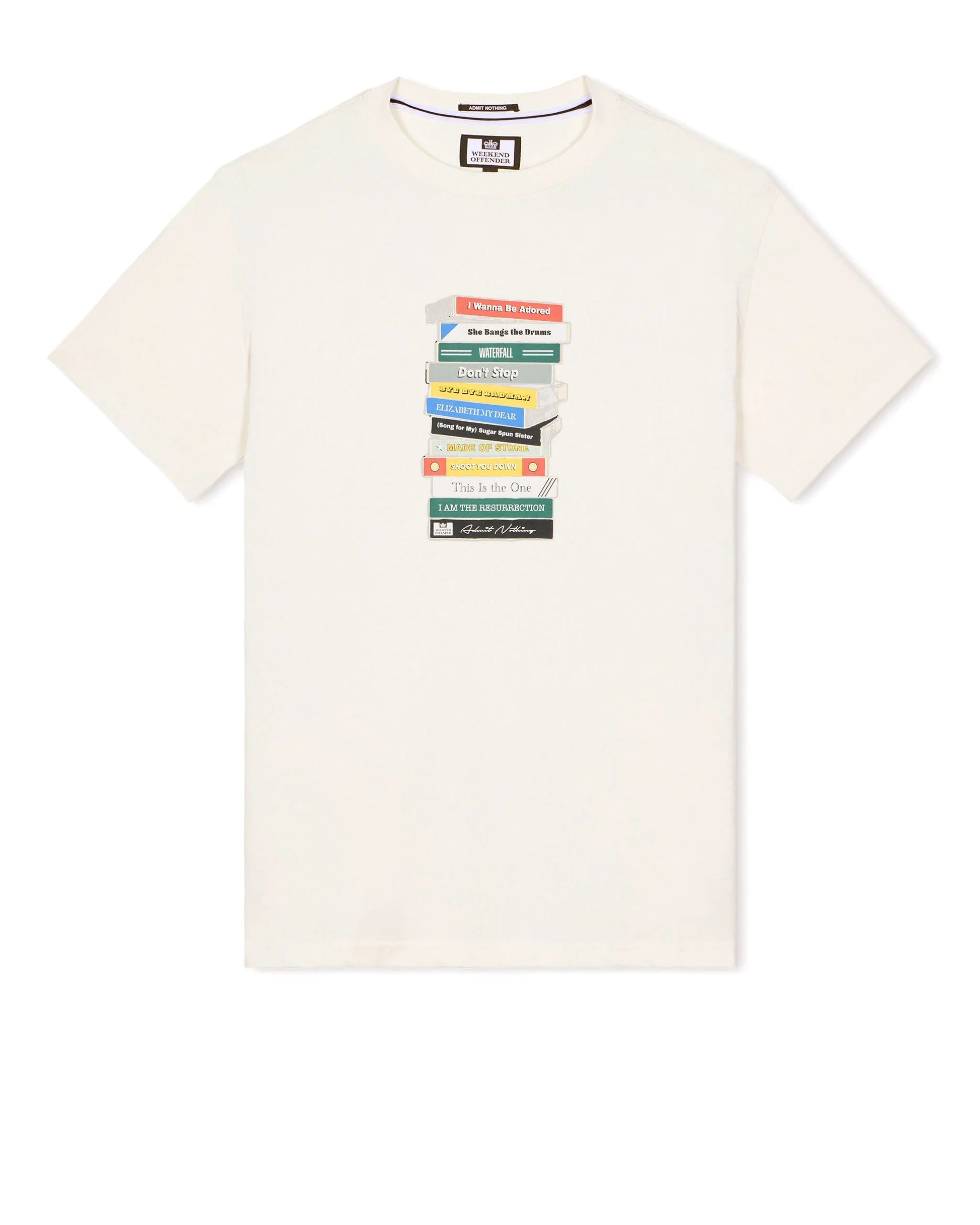 The Limone Graphic Tee features an illustration of a stack of cassette tapes, each representing a track from The Stone Roses’ iconic debut album. Released in 1989, this self-titled album is widely considered a defining moment in British rock music. Its influence on the Madchester scene and the broader indie music movement is still felt today, often hailed as one of the greatest albums of all time.