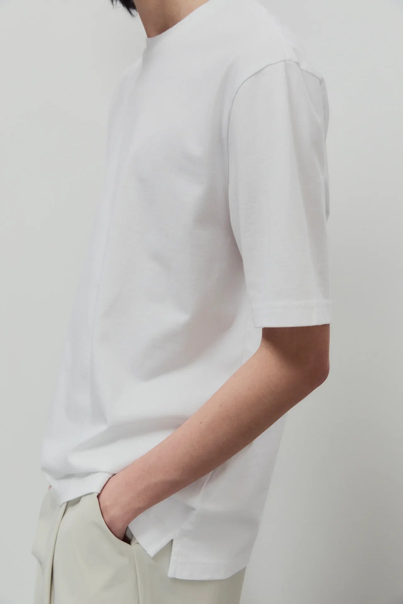 This piece is not so basic. It's heavyweight and that gives it the perfect fit. Detailed designed with a breathable organic fabric, this is the everlasting piece you deserve to combine with absolutely everything. Model is 186 cm (6’10’’ inch) and he is wearing size L