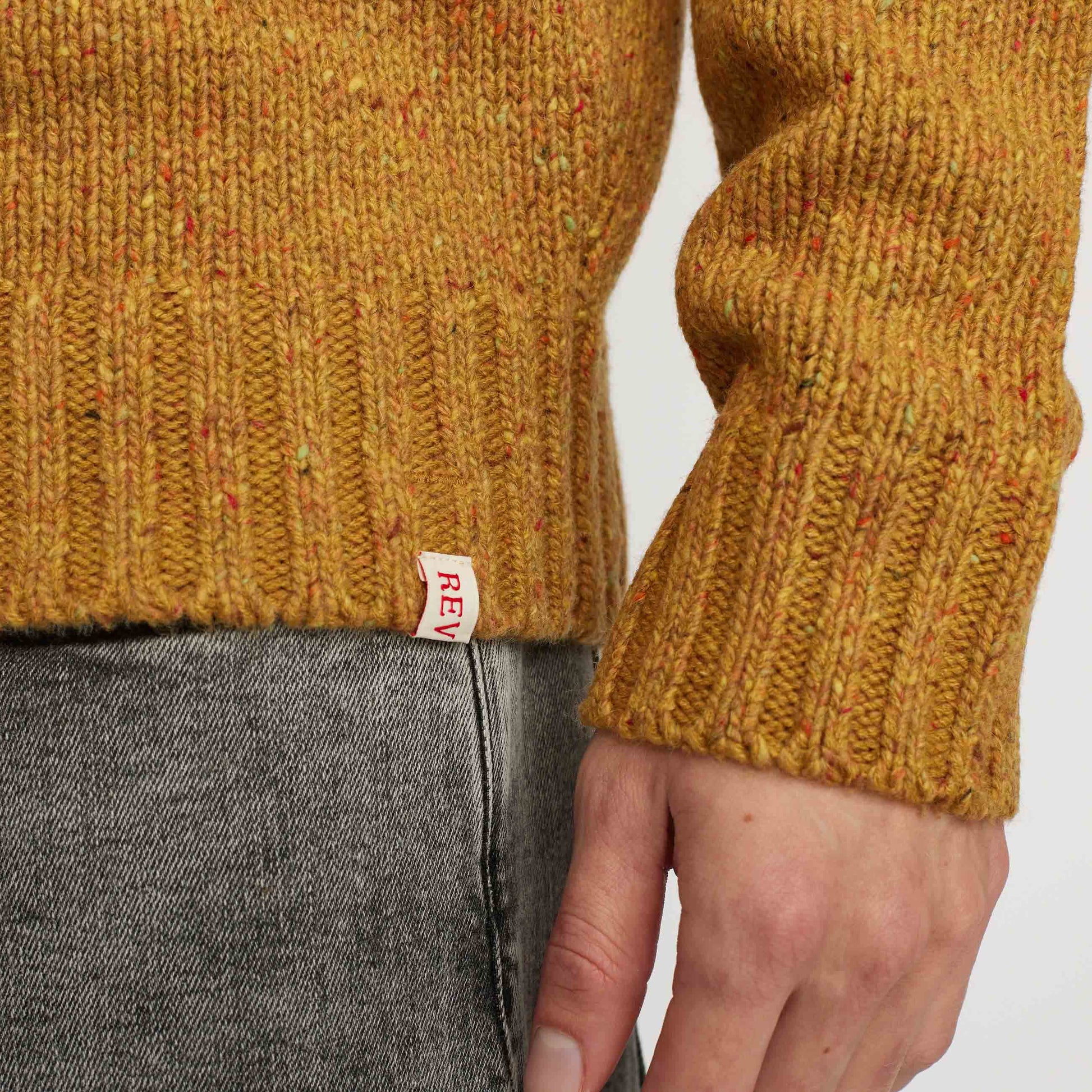 The crew-neck regular-fit style comes with a subtle nep texture to create a mélange effect. Knitted in a chunky 3 gauge, you can use this heavy sweater as a standalone in autumn and as a layering piece in wintertime